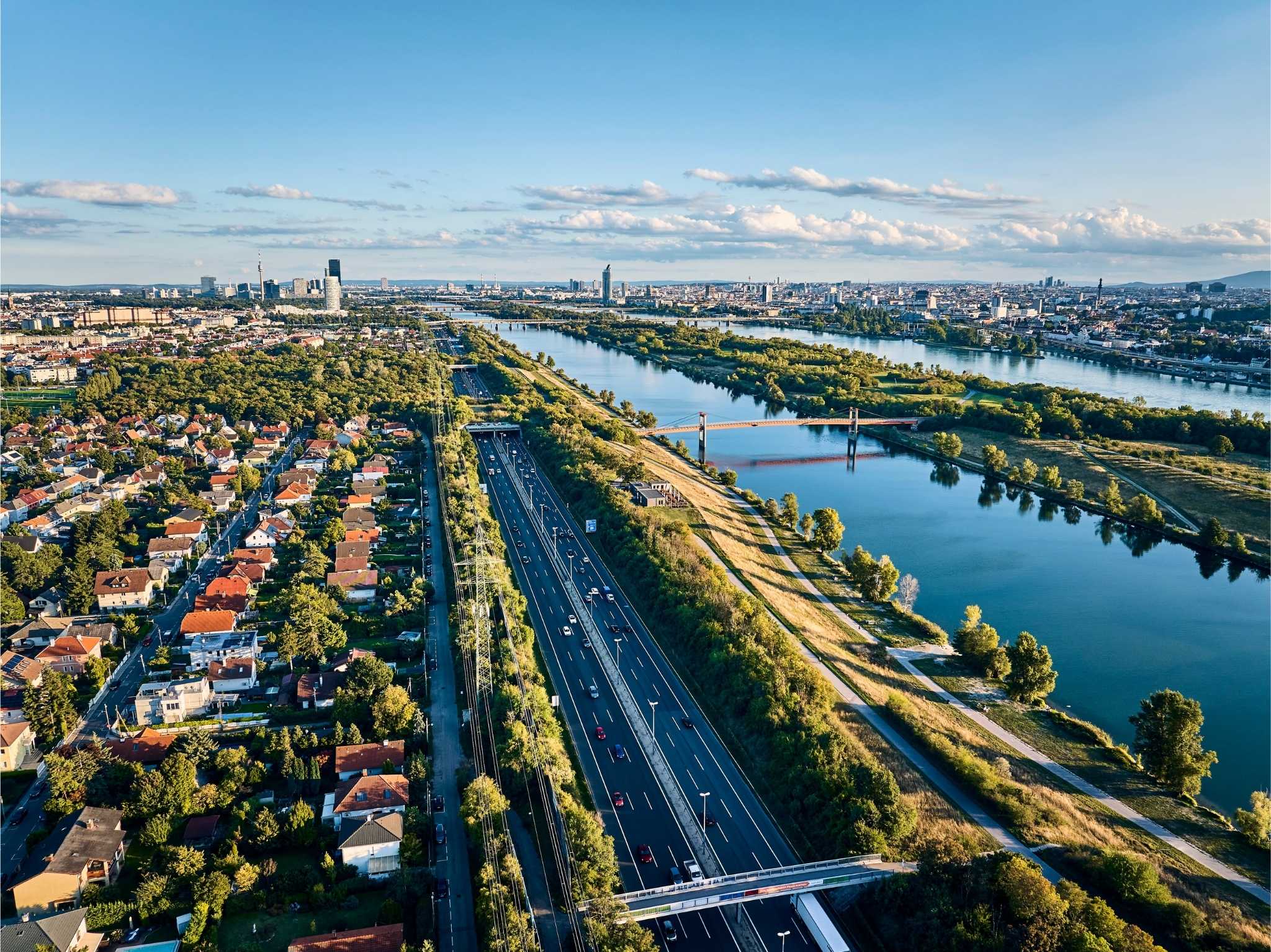 Die Lage an der Neuen Donau bietet vielfältige Freizeitmöglichkeiten für Spaziergänger, Radfahrer und Wassersportler. Am nahen Copa Beach trifft urbanes Flair auf Erholung – wer Ruhe sucht, findet sie an den idyllischen Plätzen entlang des Wassers.